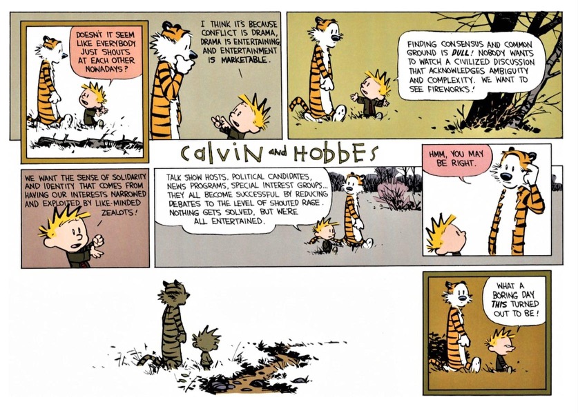 And there is monologue disguised as dialogue, in which two or more men, meeting in space, speak each with himself in strangely tortuous and circuitous ways and yet imagine they have escaped the torment of being thrown back on their own resources. [This kind of “dialogue” is] a debate in which the thoughts are not expressed in the way in which they existed in the mind but in the speaking are so pointed that they may strike home in the sharpest way, and moreover without the men that are spoken to being regarded in any way present as persons: a conversation characterized by the need neither to communicate something, nor to learn something, nor to influence someone, nor to come into connection with someone, but solely to have one’s own self-reliance confirmed by marking the impression that is made, or if it has become unsteady to have it strengthened. [5]